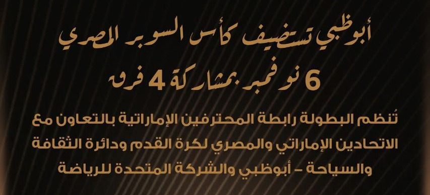 أبوظبي تستضيف كأس السوبر المصري 6 نوفمبر بمشاركة 4 أندية