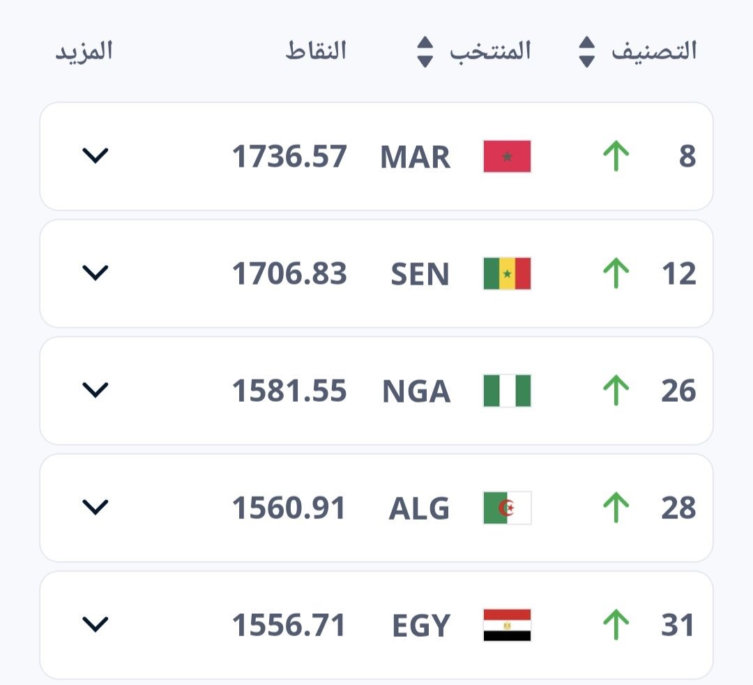 وأسهم المشوار القوي في أمم أفريقيا، والوصول إلى النهائي، في رفع رصيد المغرب من النقاط، ليكسر الرقم التاريخي المسجل باسم منتخب مصر، ويؤكد أن المنتخب المغربي بات رقمًا صعبًا على المستوى العالمي، وليس الأفريقي فقط.